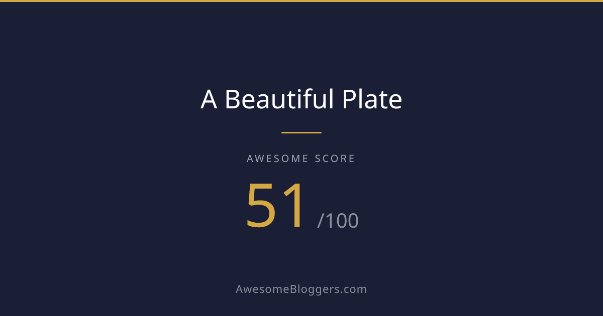 <a href="https://www.awesomebloggers.com/blog/a-beautiful-plate" target="_blank" rel="noopener"><img src="https://www.awesomebloggers.com/api/badge/a-beautiful-plate?w=150" alt="A Beautiful Plate — Awesome Score 51/100" width="150" /></a>Paste this in your blog’s sidebar or footer.
