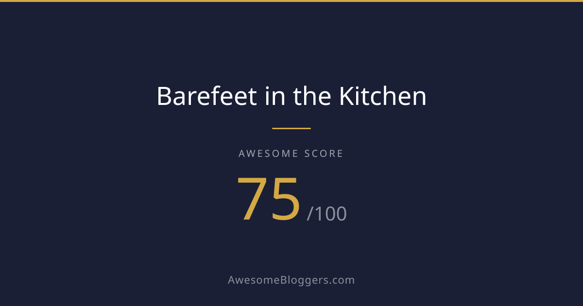 <a href="https://www.awesomebloggers.com/blog/barefeet-in-the-kitchen" target="_blank" rel="noopener"><img src="https://www.awesomebloggers.com/api/badge/barefeet-in-the-kitchen?w=150" alt="Barefeet in the Kitchen — Awesome Score 75/100" width="150" /></a>Paste this in your blog’s sidebar or footer.