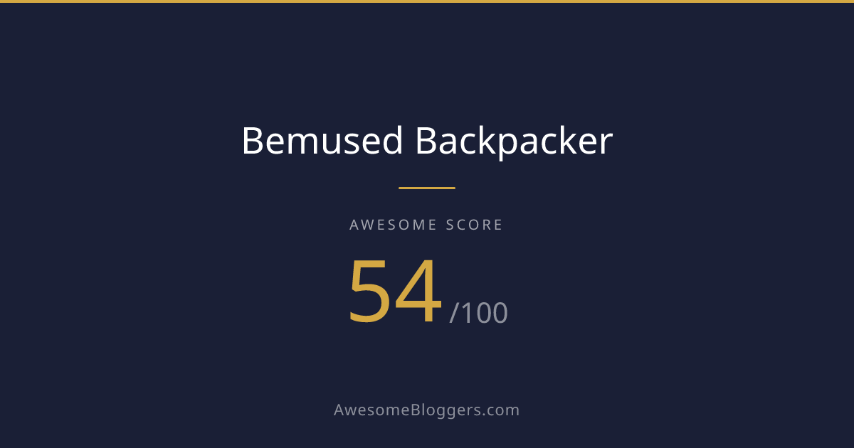<a href="https://www.awesomebloggers.com/blog/bemused-backpacker" target="_blank" rel="noopener"><img src="https://www.awesomebloggers.com/api/badge/bemused-backpacker?w=150" alt="Bemused Backpacker — Awesome Score 54/100" width="150" /></a>Paste this in your blog’s sidebar or footer.