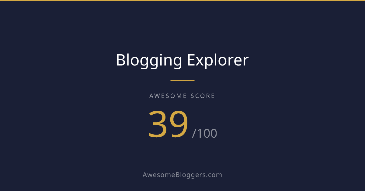 <a href="https://www.awesomebloggers.com/blog/blogging-explorer" target="_blank" rel="noopener"><img src="https://www.awesomebloggers.com/api/badge/blogging-explorer?w=150" alt="Blogging Explorer — Awesome Score 39/100" width="150" /></a>Paste this in your blog’s sidebar or footer.