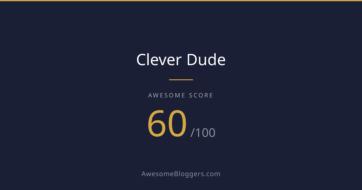 <a href="https://www.awesomebloggers.com/blog/clever-dude" target="_blank" rel="noopener"><img src="https://www.awesomebloggers.com/api/badge/clever-dude?w=150" alt="Clever Dude — Awesome Score 60/100" width="150" /></a>Paste this in your blog’s sidebar or footer.