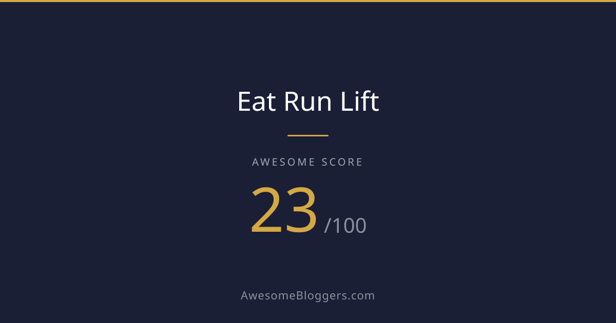 <a href="https://www.awesomebloggers.com/blog/eat-run-lift" target="_blank" rel="noopener"><img src="https://www.awesomebloggers.com/api/badge/eat-run-lift?w=150" alt="Eat Run Lift — Awesome Score 23/100" width="150" /></a>Paste this in your blog’s sidebar or footer.
