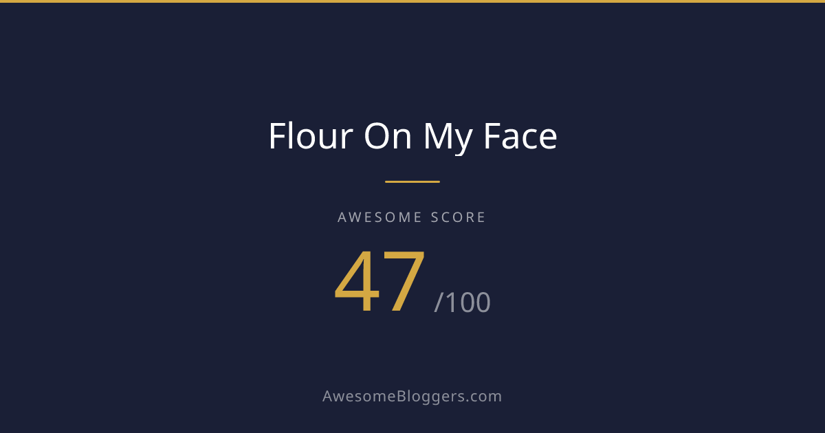 <a href="https://www.awesomebloggers.com/blog/flour-on-my-face" target="_blank" rel="noopener"><img src="https://www.awesomebloggers.com/api/badge/flour-on-my-face?w=150" alt="Flour On My Face — Awesome Score 47/100" width="150" /></a>Paste this in your blog’s sidebar or footer.