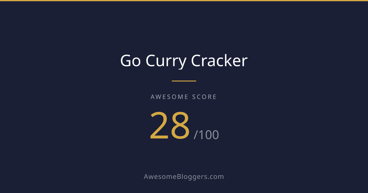 <a href="https://www.awesomebloggers.com/blog/go-curry-cracker" target="_blank" rel="noopener"><img src="https://www.awesomebloggers.com/api/badge/go-curry-cracker?w=150" alt="Go Curry Cracker — Awesome Score 28/100" width="150" /></a>Paste this in your blog’s sidebar or footer.
