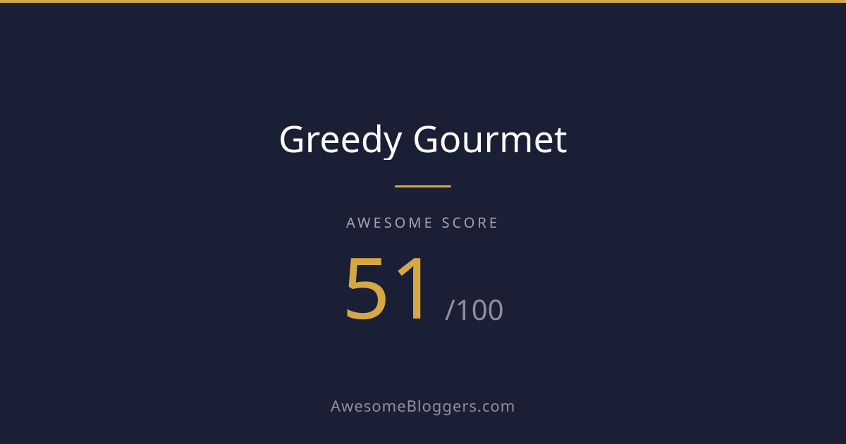 <a href="https://www.awesomebloggers.com/blog/greedy-gourmet" target="_blank" rel="noopener"><img src="https://www.awesomebloggers.com/api/badge/greedy-gourmet?w=150" alt="Greedy Gourmet — Awesome Score 51/100" width="150" /></a>Paste this in your blog’s sidebar or footer.