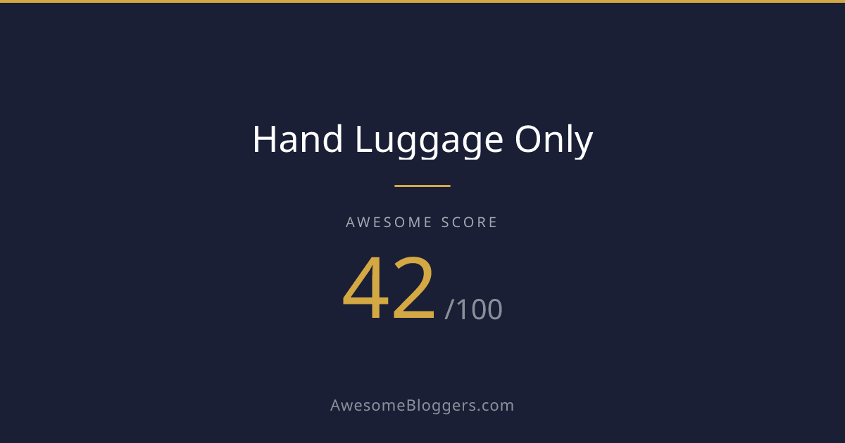 <a href="https://www.awesomebloggers.com/blog/hand-luggage-only" target="_blank" rel="noopener"><img src="https://www.awesomebloggers.com/api/badge/hand-luggage-only?w=150" alt="Hand Luggage Only — Awesome Score 42/100" width="150" /></a>Paste this in your blog’s sidebar or footer.