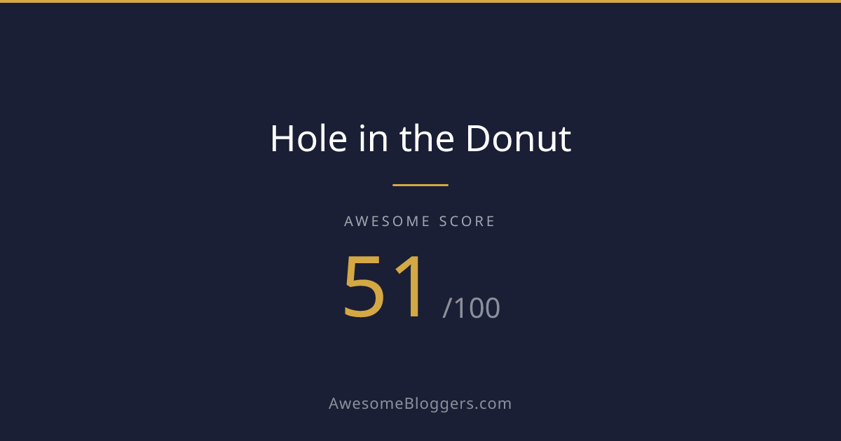 <a href="https://www.awesomebloggers.com/blog/hole-in-the-donut" target="_blank" rel="noopener"><img src="https://www.awesomebloggers.com/api/badge/hole-in-the-donut?w=150" alt="Hole in the Donut — Awesome Score 0/100" width="150" /></a>Paste this in your blog’s sidebar or footer.