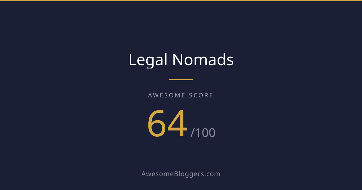 <a href="https://www.awesomebloggers.com/blog/legal-nomads" target="_blank" rel="noopener"><img src="https://www.awesomebloggers.com/api/badge/legal-nomads?w=150" alt="Legal Nomads — Awesome Score 64/100" width="150" /></a>Paste this in your blog’s sidebar or footer.