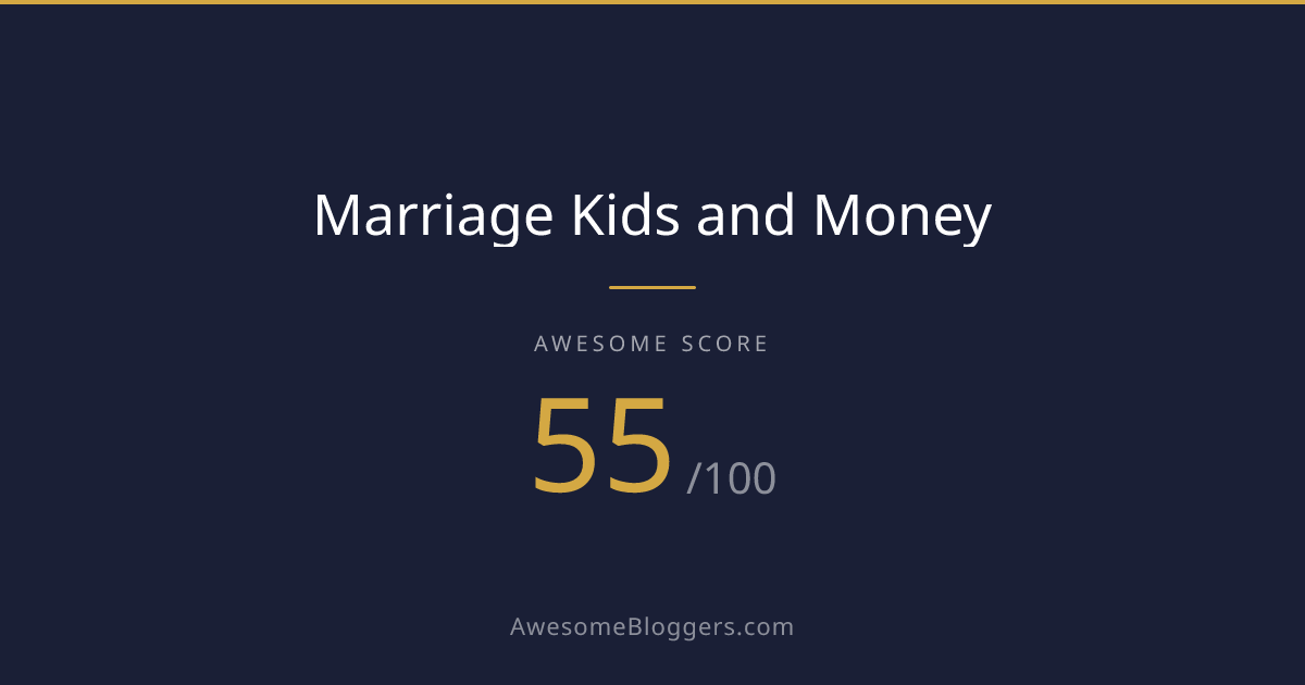 <a href="https://www.awesomebloggers.com/blog/marriage-kids-and-money" target="_blank" rel="noopener"><img src="https://www.awesomebloggers.com/api/badge/marriage-kids-and-money?w=150" alt="Marriage Kids and Money — Awesome Score 55/100" width="150" /></a>Paste this in your blog’s sidebar or footer.