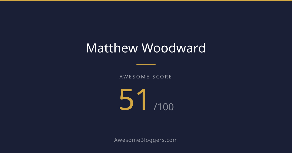 <a href="https://www.awesomebloggers.com/blog/matthew-woodward" target="_blank" rel="noopener"><img src="https://www.awesomebloggers.com/api/badge/matthew-woodward?w=150" alt="Matthew Woodward — Awesome Score 51/100" width="150" /></a>Paste this in your blog’s sidebar or footer.