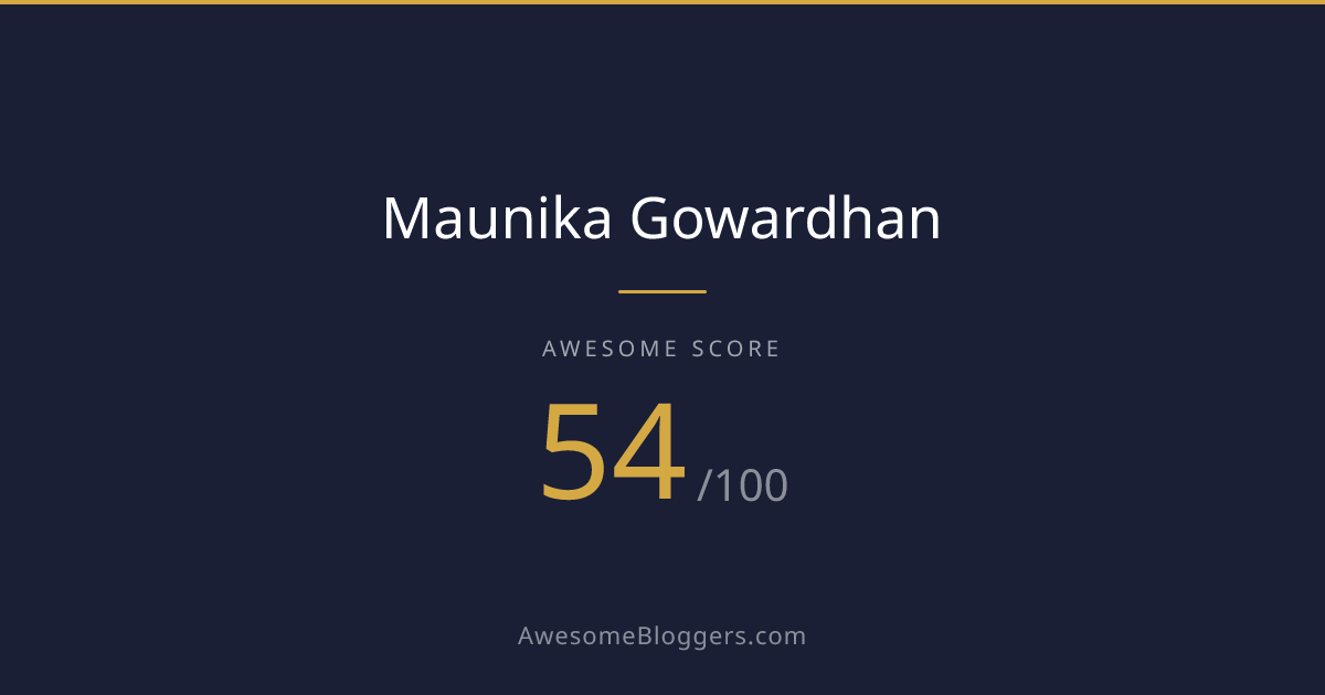 <a href="https://www.awesomebloggers.com/blog/maunika-gowardhan" target="_blank" rel="noopener"><img src="https://www.awesomebloggers.com/api/badge/maunika-gowardhan?w=150" alt="Maunika Gowardhan — Awesome Score 54/100" width="150" /></a>Paste this in your blog’s sidebar or footer.