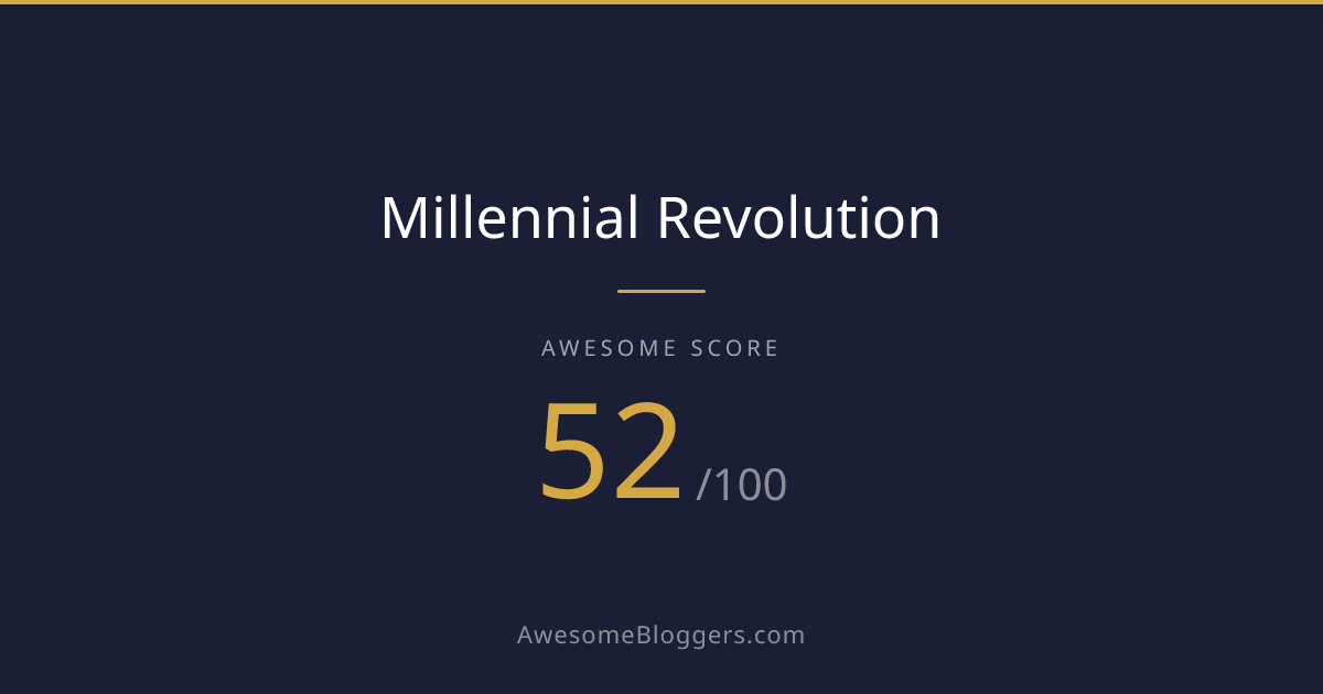 <a href="https://www.awesomebloggers.com/blog/millennial-revolution" target="_blank" rel="noopener"><img src="https://www.awesomebloggers.com/api/badge/millennial-revolution?w=150" alt="Millennial Revolution — Awesome Score 52/100" width="150" /></a>Paste this in your blog’s sidebar or footer.
