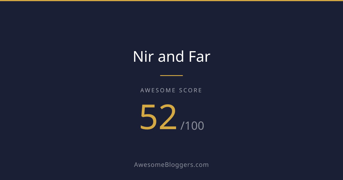 <a href="https://www.awesomebloggers.com/blog/nir-and-far" target="_blank" rel="noopener"><img src="https://www.awesomebloggers.com/api/badge/nir-and-far?w=150" alt="Nir and Far — Awesome Score 57/100" width="150" /></a>Paste this in your blog’s sidebar or footer.