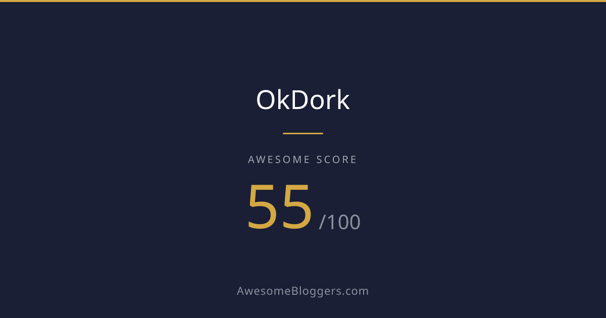 <a href="https://www.awesomebloggers.com/blog/okdork" target="_blank" rel="noopener"><img src="https://www.awesomebloggers.com/api/badge/okdork?w=150" alt="OkDork — Awesome Score 55/100" width="150" /></a>Paste this in your blog’s sidebar or footer.