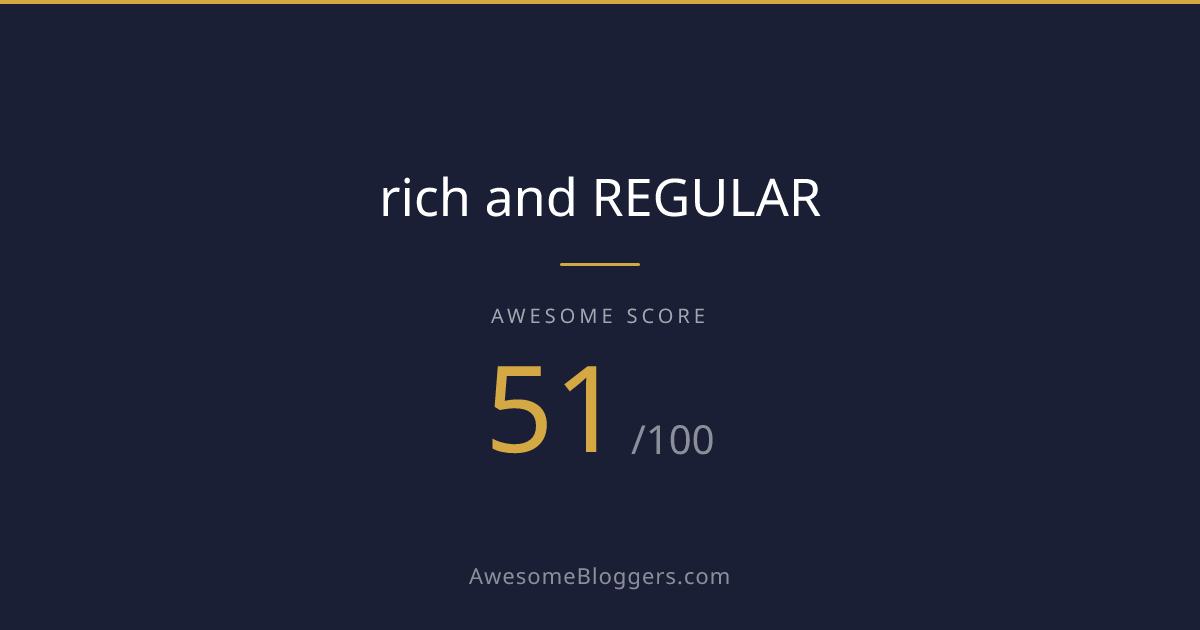 <a href="https://www.awesomebloggers.com/blog/rich-and-regular" target="_blank" rel="noopener"><img src="https://www.awesomebloggers.com/api/badge/rich-and-regular?w=150" alt="rich and REGULAR — Awesome Score 51/100" width="150" /></a>Paste this in your blog’s sidebar or footer.