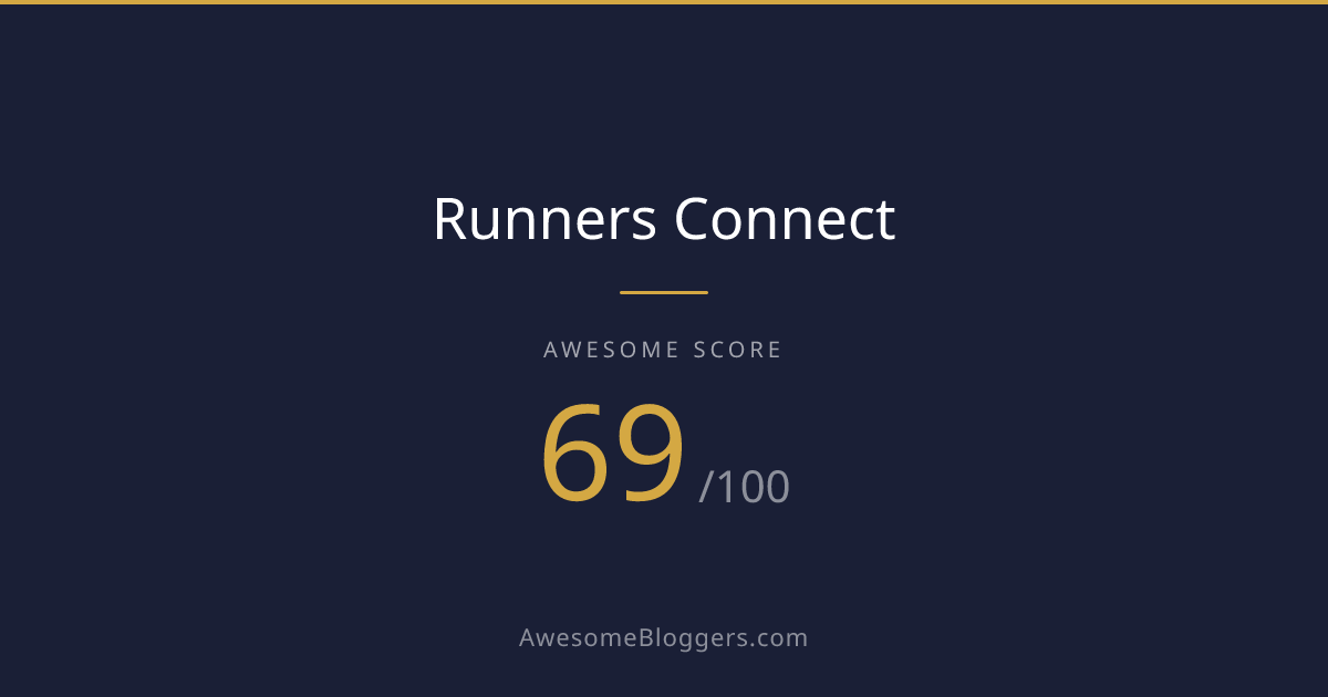 <a href="https://www.awesomebloggers.com/blog/runners-connect" target="_blank" rel="noopener"><img src="https://www.awesomebloggers.com/api/badge/runners-connect?w=150" alt="Runners Connect — Awesome Score 73/100" width="150" /></a>Paste this in your blog’s sidebar or footer.