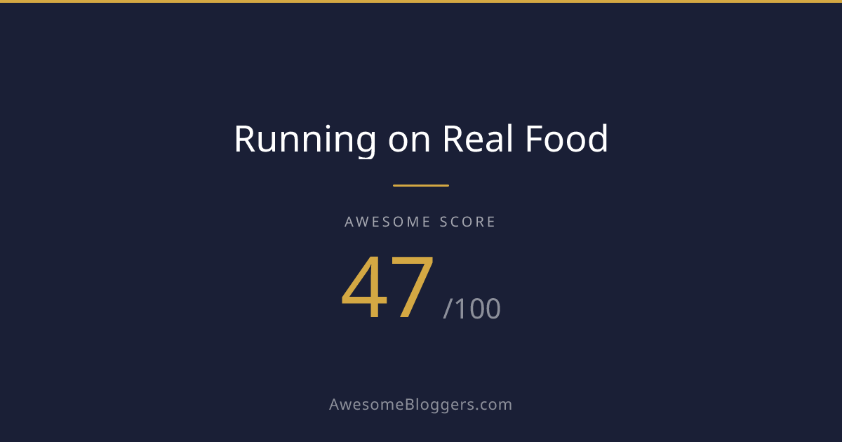 <a href="https://www.awesomebloggers.com/blog/running-on-real-food" target="_blank" rel="noopener"><img src="https://www.awesomebloggers.com/api/badge/running-on-real-food?w=150" alt="Running on Real Food — Awesome Score 47/100" width="150" /></a>Paste this in your blog’s sidebar or footer.