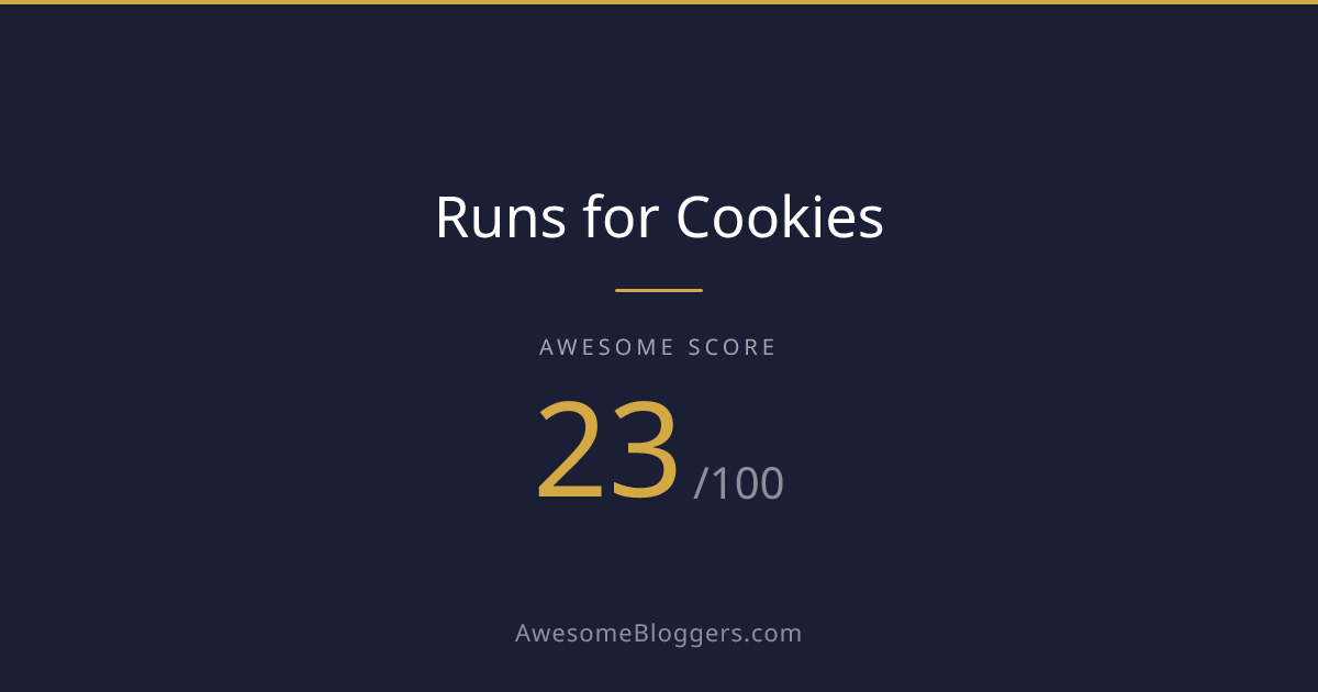 <a href="https://www.awesomebloggers.com/blog/runs-for-cookies" target="_blank" rel="noopener"><img src="https://www.awesomebloggers.com/api/badge/runs-for-cookies?w=150" alt="Runs for Cookies — Awesome Score 23/100" width="150" /></a>Paste this in your blog’s sidebar or footer.