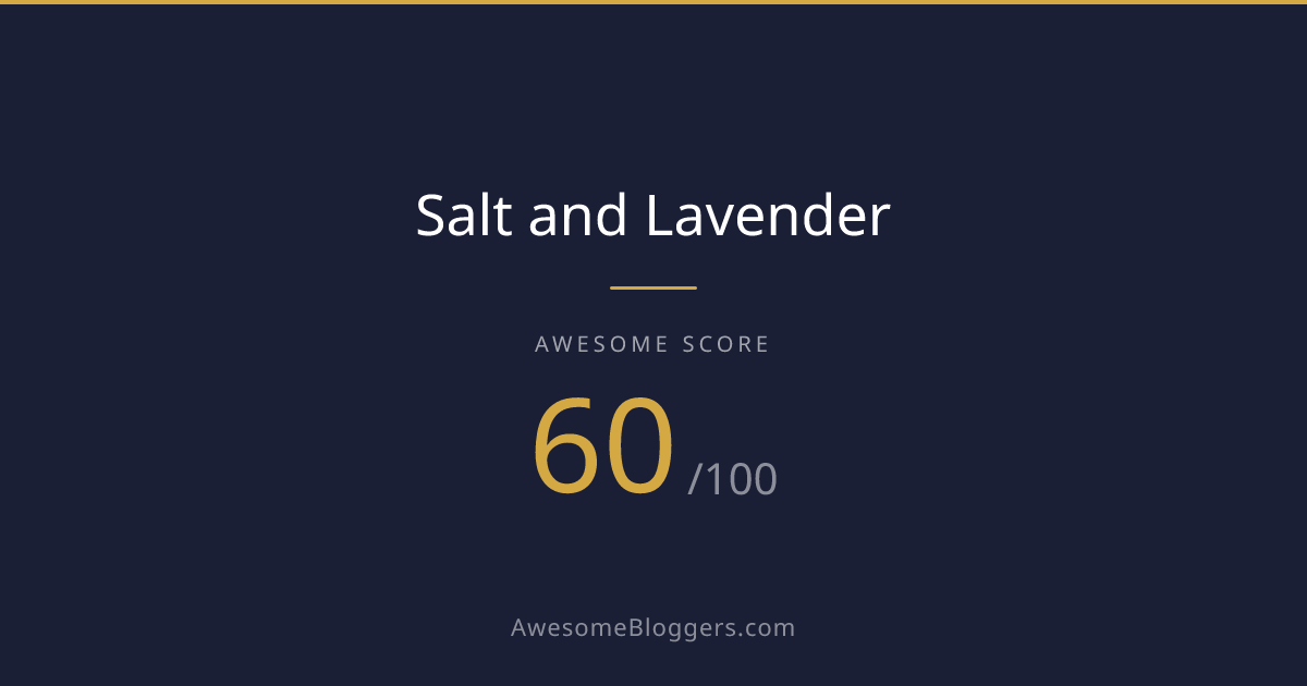 <a href="https://www.awesomebloggers.com/blog/salt-and-lavender" target="_blank" rel="noopener"><img src="https://www.awesomebloggers.com/api/badge/salt-and-lavender?w=150" alt="Salt and Lavender — Awesome Score 60/100" width="150" /></a>Paste this in your blog’s sidebar or footer.