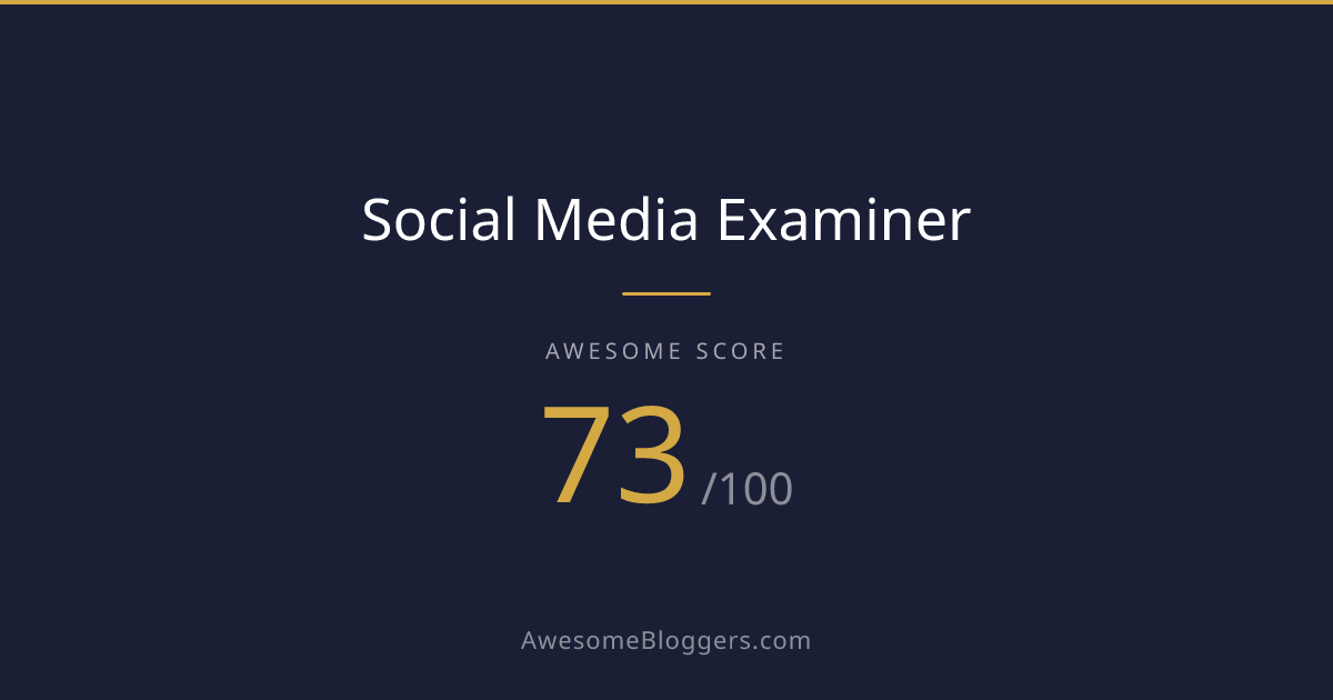 <a href="https://www.awesomebloggers.com/blog/social-media-examiner" target="_blank" rel="noopener"><img src="https://www.awesomebloggers.com/api/badge/social-media-examiner?w=150" alt="Social Media Examiner — Awesome Score 77/100" width="150" /></a>Paste this in your blog’s sidebar or footer.