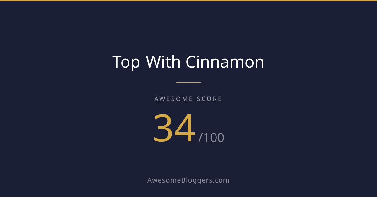 <a href="https://www.awesomebloggers.com/blog/top-with-cinnamon" target="_blank" rel="noopener"><img src="https://www.awesomebloggers.com/api/badge/top-with-cinnamon?w=150" alt="Top With Cinnamon — Awesome Score 0/100" width="150" /></a>Paste this in your blog’s sidebar or footer.