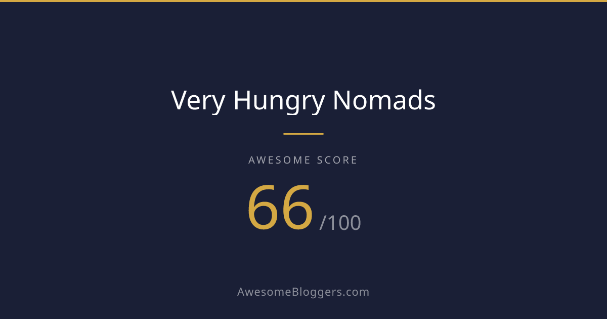 <a href="https://www.awesomebloggers.com/blog/very-hungry-nomads" target="_blank" rel="noopener"><img src="https://www.awesomebloggers.com/api/badge/very-hungry-nomads?w=150" alt="Very Hungry Nomads — Awesome Score 71/100" width="150" /></a>Paste this in your blog’s sidebar or footer.